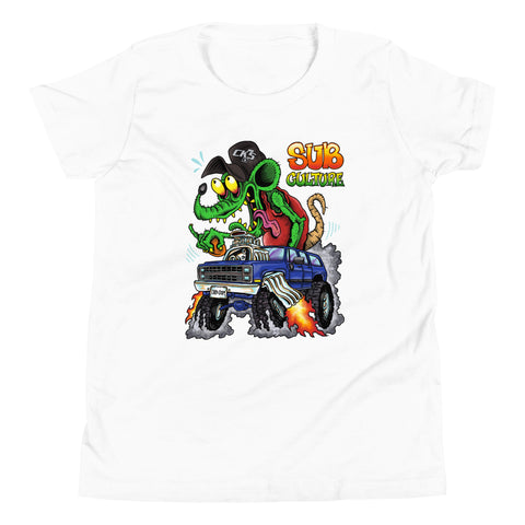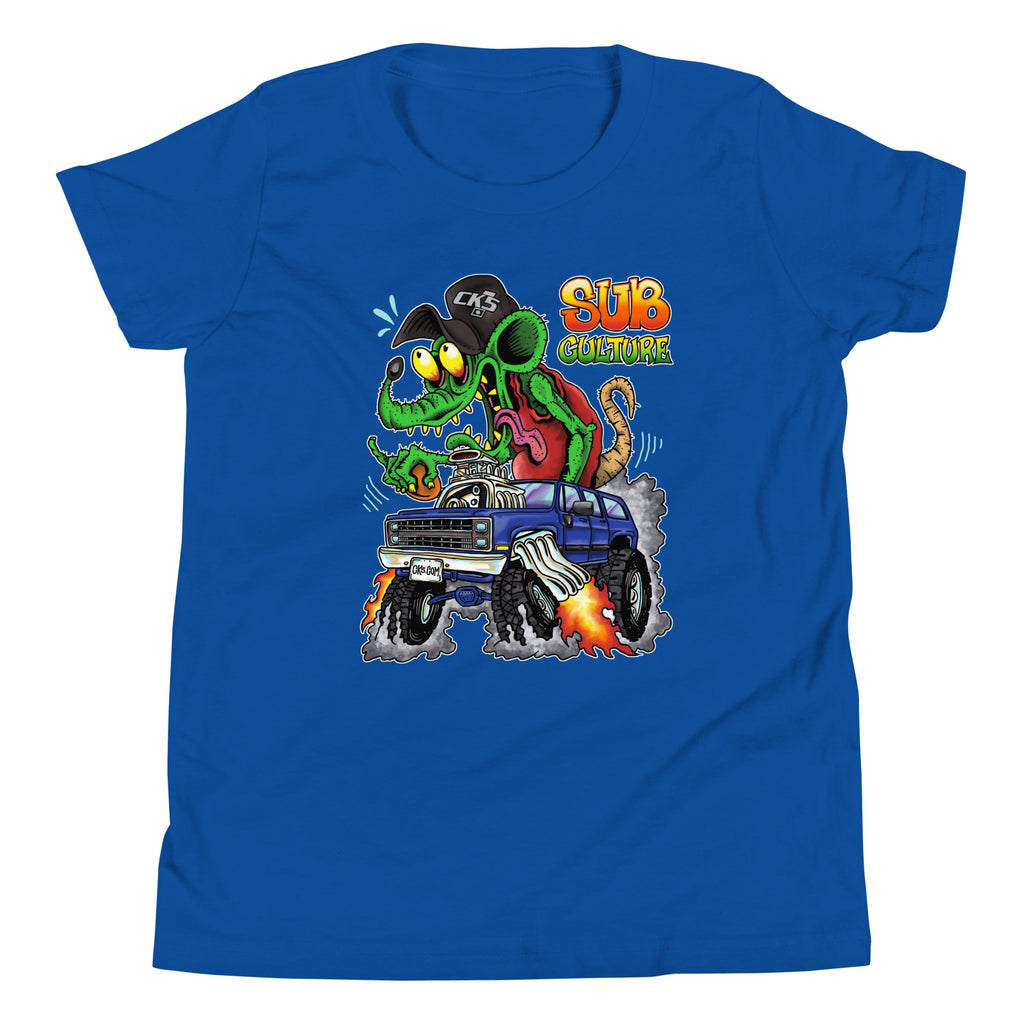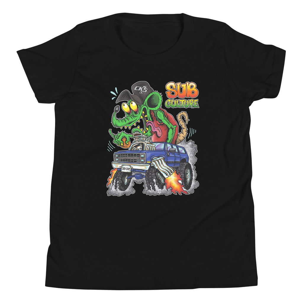 Your child will love this rat fink inspired T-Shirt featuring a lifted 1983-1988 Chevy Suburban.